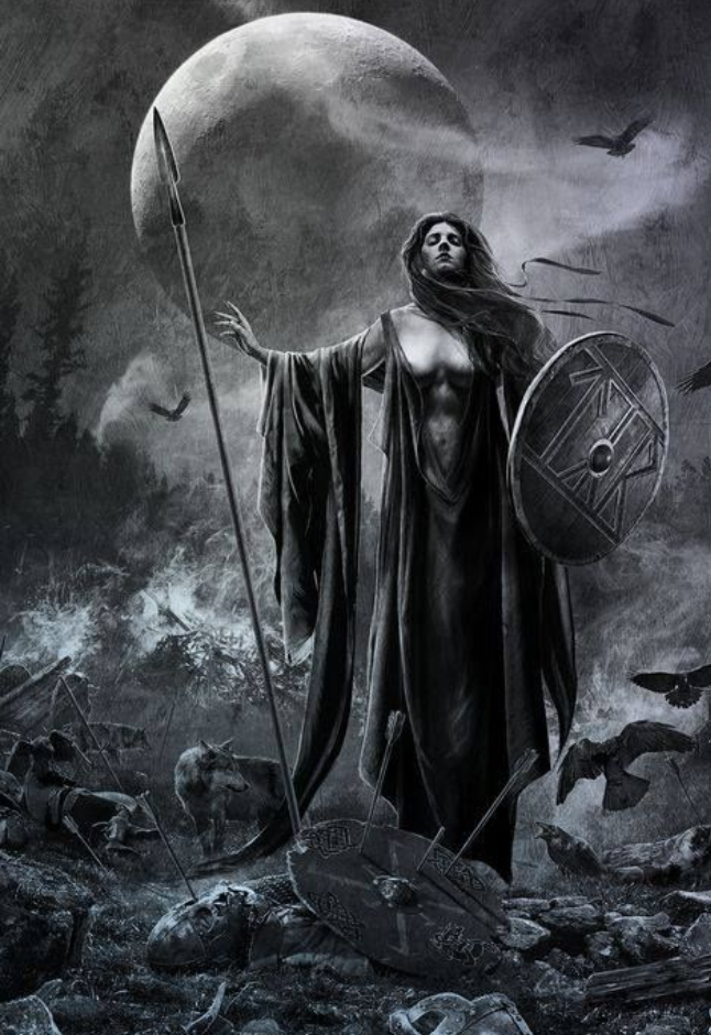 The Morrigan, the embodiment of power, a formidable prophetic Goddess who incites fear as a harbinger of death.